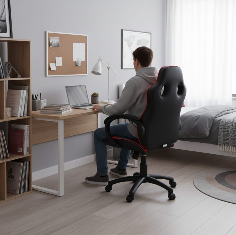 Fotel gamingowy dla dzieci Red Fighter C6Regulowana wysokość:Mechanizm wahadłowy:Solidne podłokietniki:Skóra PU + powierzchnia PVC:Wytrzymały pięcioramienny krzyż z nylonuDane techniczne: