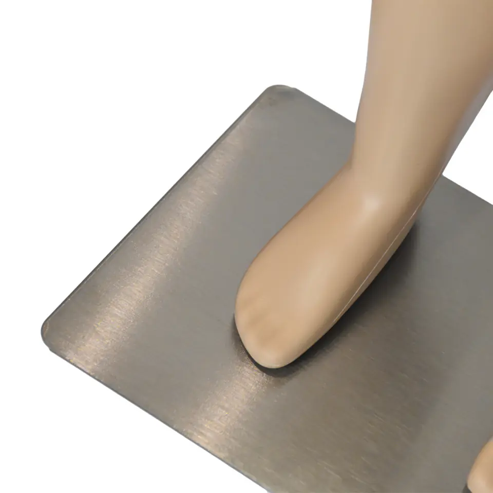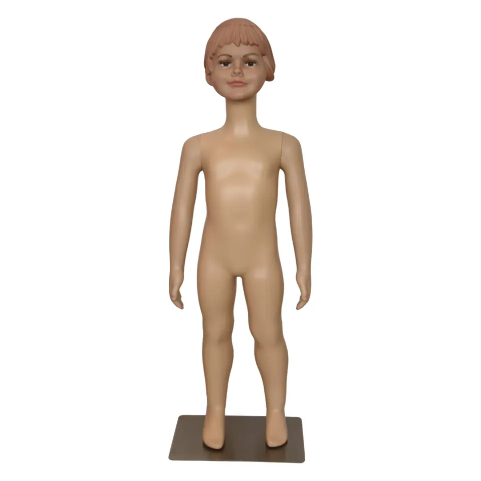 Manekin posiada delikatny makijaż, realny wygląd oczu oraz rzęs i ufryzowane włosy. Naturalna sylwetka manekina dziecięcego zapewnia użytkownikowi łatwość montażu i demontażu manekina i szybkiej zmiany prezentowanej na nim kolekcji odzieży i dodatków.Jest wykonany z polietylenu, czyli bardzo dobrej jakości, grubego, trwałego plastiku. Manekin jest całościowy ze zdejmowanymi rękoma. Manekin ze względu na wykonanie z dobrego tworzywa jest odporny na upadki i stłuczenia.