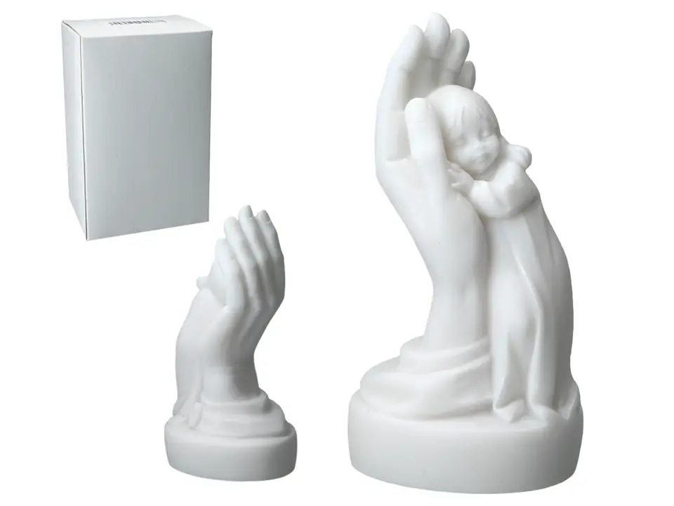 Alabastrowa figurka przedstawiająca dziewczynkę otuloną dłonią. Od czasów starożytnych alabaster był wysoko cenionym kamieniem ozdobnym i dekoracyjnym. Niezliczona ilość wzorów jest inspiracją do tworzenia własnych niepowtarzalnych