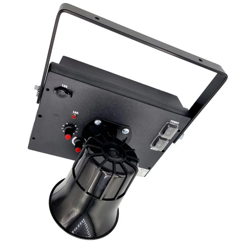 Wzmocniony głośnik o mocy 120 dB zapewnia ochronę obszaru do 6000 m². Zasięg można regulować potencjometrem głośności – od małego ogrodu po duże plantacje.