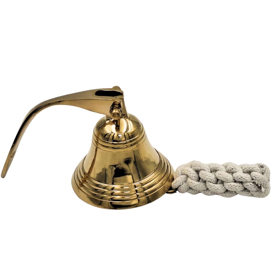 Dzwon Mosiężny Okrętowy Średnica 7,5 cm - Dekoracja Marynistyczna - HB34/3 Ten mosiężny dzwon okrętowy o średnicy 7,5 cm to niewielki, ale niezwykle wyrazisty element wystroju, który świetnie komponuje się z aranżacjami w stylu marynistycznym, retro i kolonialnym. Doskonały prezent dla miłośnika żeglarstwa, ozdoba kajuty, sypialni lub gabinetu. Można go również zawiesić w kuchni i używać jako stylowego dzwonka do zwoływania domowników na posiłki. W tradycji morskiej dzwon okrętowy to "dusza statku" – ogłaszał zmiany wachty, ostrzegał przed niebezpieczeństwem i odpędzał burze. Informacje o produkcie: ?Średnica: 7,5 cm ?Materiał: Mosiądz ?Kolor: Złoty ?Serce dzwonu: Mosiężne ?Ringabulina: Biała, ozdobna lina Zalety produktu: ?Klasyczny mosiężny dzwon w złotym kolorze ?Ozdobna ringabulina – biała, pleciona lina do uderzania ?Kompaktowy rozmiar – idealny do dekoracji i użytku domowego ?Symboliczny upominek o marynistycznym charakterze Idealny jako: ?Upominek dla żeglarza, kapitana lub fana morskich klimatów ?Dekoracja do hotelu, pensjonatu nad morzem lub jeziorem ?Marynistyczna ozdoba kuchni, gabinetu lub altany ?Stylowy dzwonek obiadowy lub recepcyjny ?Ozdoba w stylu retro / vintage