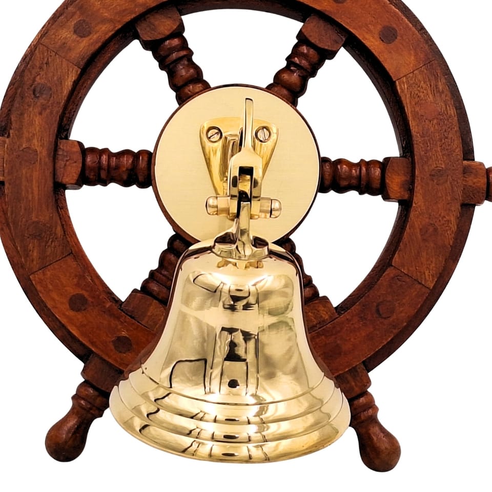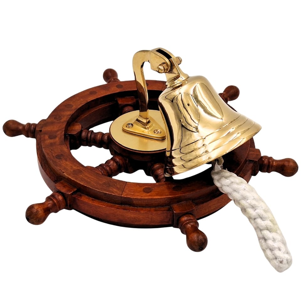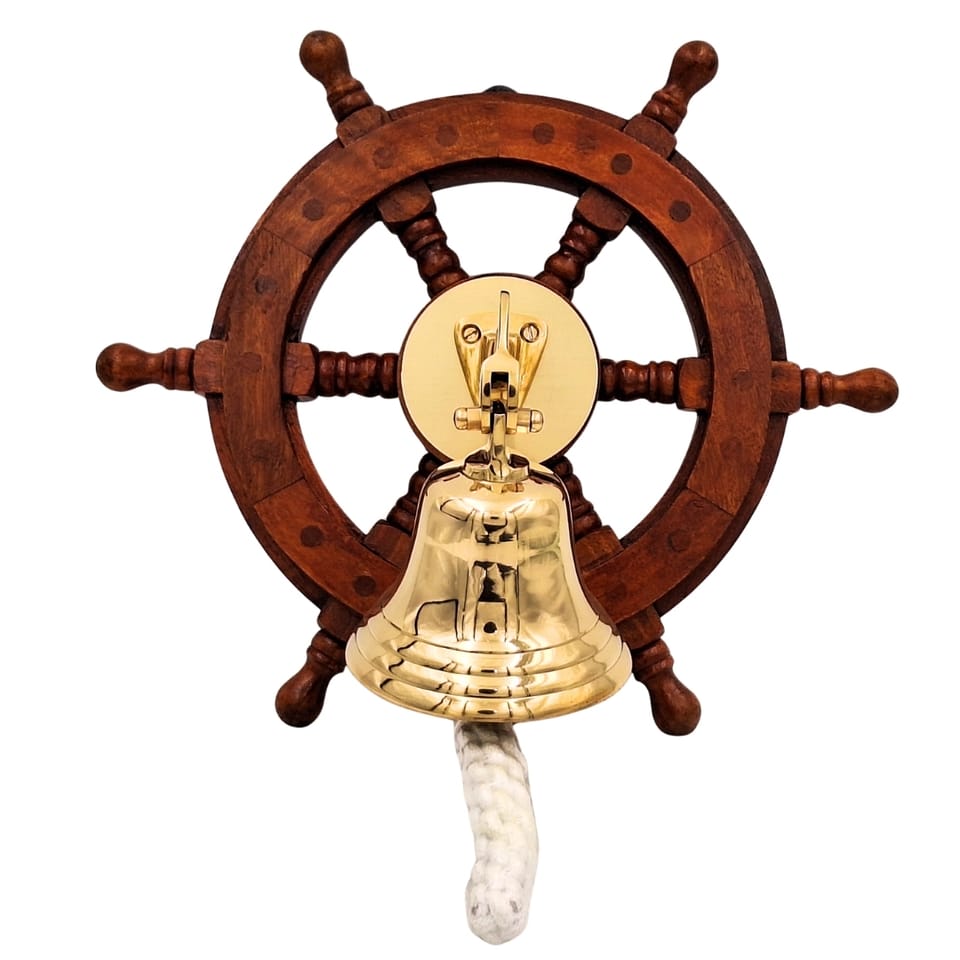 Dzwon Okrętowy Mosiężny w Kole Sterowym – Dekoracja Marynistyczna - NC2356A
