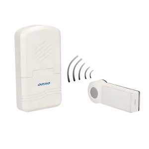 Dzwonek bezprzewodowy, zasięg w terenie otwartym do 70 m, wodoodporny przycisk, transmisja radiowa (częstotliwość 433MHz), regulacja głośności dzwonka, poziom dźwięku 60?80 dB, liczbę przycisków współpracujących ze sobą można zwiększać w miarę potrzeb, learning system (automatyczne logowanie), nie wymaga instalacji dzwonkowej.