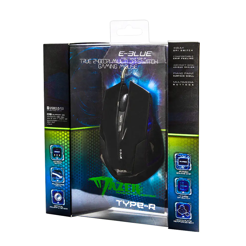 Mysz dla gracza E-blue Type RFascynujące efekty LEDErgonomiczny design dla osób praworęcznychDesign inspirowany samolotemDuży gumowy scrollSpecyfikacja: