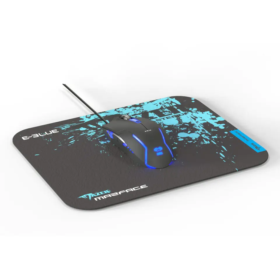 E-blue Polygon zestaw klawiatura przewodowa USB) US, czarno-niebieski z myszką Cobra II, do gry, z podkładką Mazer Marface S rod