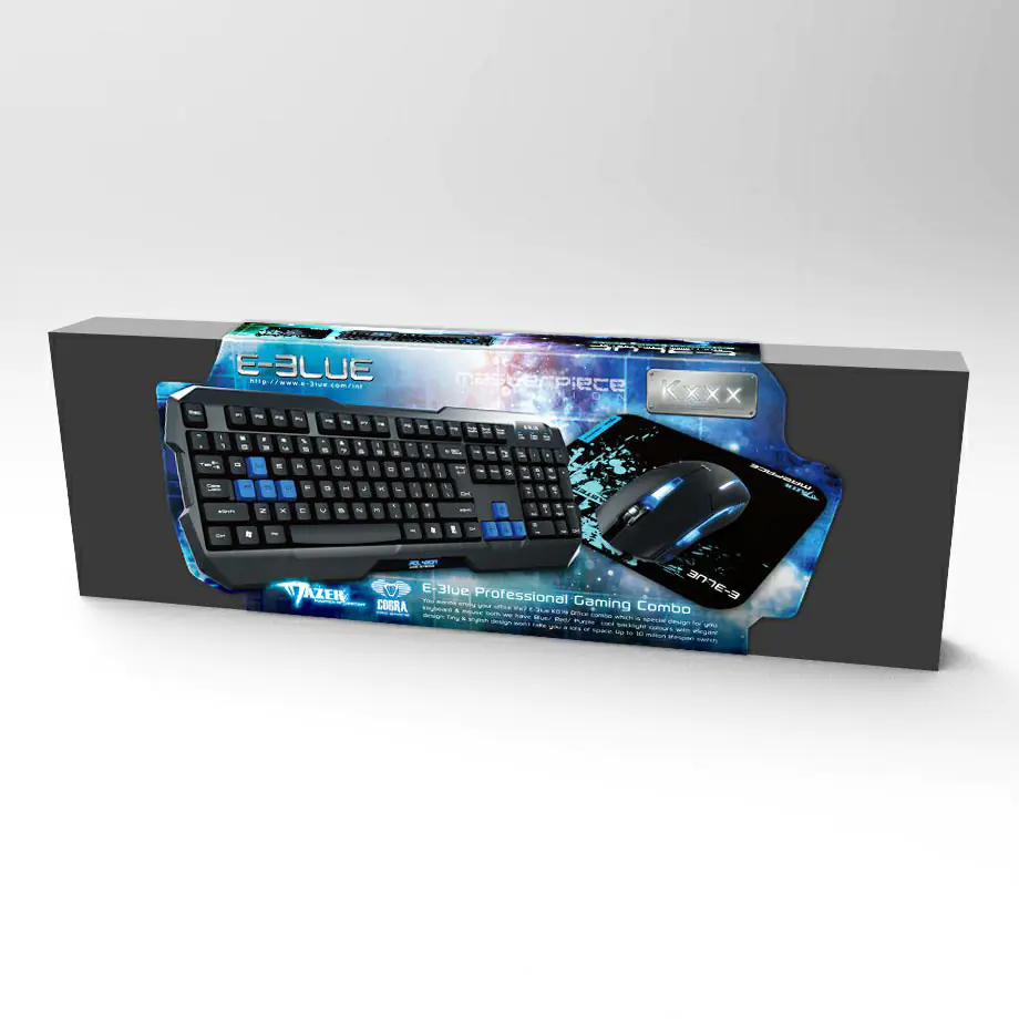 ZESTAW DLA GRACZA Z KLAWIATURĄ POLYGON, MYSZKĄ COBRA II I PODKŁADKĄ MAZER SKLAWIATURAKlawiatura dla gracza PolygonJeżeli jesteś początkującym graczem i nie chcesz wydawać dużo pieniędzy na akcesoria, ale potrzebujesz klawiatury z wszystkimi potrzebnymi graczowi funkcjami, jest Polygon idealna klawiatura dla Ciebie. Wyróżnione na niebiesko klawisze dla graczy dają Tobie pełną kontrolę i ułatwią grę każdemu użytkownikowi.Laserowy nadruk klawiszyLaserowy nadruk klawiszy gwarantuje, że oznaczenia nie zniszczą się nawet przy długim użytkowaniu.Prosta i eleganckaKlawiatura ma prosty i elegancki wygląd, a do tego jest praktyczna podczas użytkownia. W dolnej części jest umieszczona niebieska wzmocniona podstawa dla lepszej trwałości klawiatury. Klawiatura posiada również antypoślizgowe stopki.Regulacja pochyleniaStopki w dolnej części klawiatury służą do ustawienia indywidualnego kontu nachylenia. Są zrobione tak, aby uzyskać jak najwięcej kątów pochylenia.Odporna na zalanieDzięki umieszczonym kanalikom w spodniej części klawiatury jest ona odporna na zalanie. Użytkownik nie musi się obawiać przed przypadkowym zalaniem klawiatury napojem.Specyfikacja:- Ilość klawiszy: 104- Żywotność klawiszy: > 10 mln uderzeń- Połączenie: USB- Długość kabla: 1,6 m- Rozmiary: 458 x 169 x 36 mm - Kompatybilna z : Windows 95/98/2000/ME/NT/XP/3.X/Vista/win 7MYSZMysz dla graczy Cobra IICobra II jest myszką dla początkujących graczy o podstawowych parametrach. Dięki optycznemu sensorowi red wave pozwala na uzyskanie dobrej kontroli nad ruchem. Ta ergonomiczna mysz oferuje 3 poziomy DPI, aby gracze mogli zyskać idealną kontrolę w każdej części i warunkach podczas gry i mogli ją w pełni wykorzystaćObciążenie dla lepszej stabilnościDla zwiększenia stabilności w myszce Cobra zamontowano lekkie metalowe ciężarki. Mysz posiada idealną wagę dzięki czemu perfekcyjne leży w dłoni podczas energicznych ruchów.Podświetlenie LEDAby zwiększyć swoją atrakcyjność mysz w kilku miejscach emituje dyskretne światło niebieską diodą LED, . Podświetlone jest logo E-Blue w dolnej części korpusu myszy, efektowne detale wokół niego oraz przełącznik rozdzielczości DPI.Sensor optyczny Red waveMysz jest wyposażona w wysokiej jakości czujnik optyczny, który zapewnia bardzo dobrą reakcję oraz kontrolę podczas gry. A dodatkowo z regulacją 3 poziomami DPI jest ona gwarantowana.Specyfikacja:- Regulowane DPI: 400/800/1600- Sensor optyczny: AVAGO 3509- Ilość klawiszy: 6- Łączność: USB- Długość kabla: 1,8 m- Żywotność klawiszy: 3 mln kliknięć- Rozmiary: 126 x 63,7 x 38,6 mm- Kompatybilny z Windows 98/2000/ME/NT/XP/Win 7PODKŁADKAPodkładka dla gracza Mazer S - 28 x 22,5 cmPodkładki pod mysz Mazer są zaprojektowane tak, aby oprócz dobrych parametrów, wizualnie i kolorystycznie pasowały do całej serii klawiatur i myszy Mazer.Bardzo gęsta tkaninaMateriał z którego wykonana jest podkładka, jest przetwarzany w bardzo wysokich temperaturach dzięki czemu uzyskuje się bardzo gładką powierzchnię podłoża. To daje szybką i precyzyjną kontrolę ruchu myszy.Gładkie krawędzieKrawędzie podkładki pod mysz zostały obszyte ale mimo to są gładkie i nie przeszkadzają w użytkowaniu. Dłoń nie będzie zmęczona nawet podczas długotrwałego użytkowania.Unikalny design z nadrukiemMotyw Mazer serii dla graczy marki E-blue , jest przeznaczony dla wszystkich fanów tej serii produktów do graczy.Lekka i mobilnaPodkładka E-blue Cobra jest lekka i miękka, można ją w łatwy sposób zwinąć. Możesz ją zabrać gdziekolwiek.Utrzymanie: Czyścić wodą i szmatką