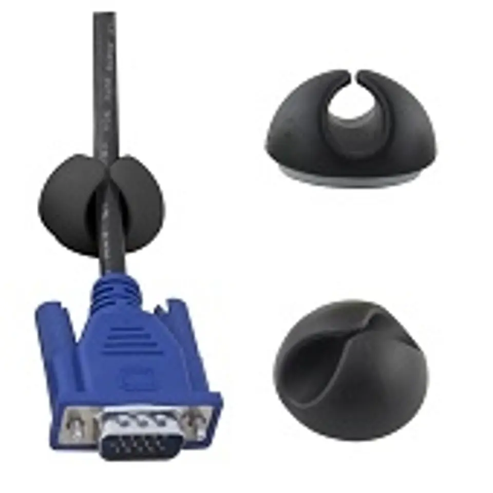 Wysokiej jakości organizer do kabli. Wykonany z elastycznego, odpornego na uszkodzenia tworzywa sztucznego. Bardzo łatwy w użyciu. Może być przyklejany do biurek, ścian i wielu innych powierzchni. Umożliwia porządkowanie wszelkiego rodzaju kabli o średnicy nie większej niż 6mm. Zapobiega spadaniu kabli z biurka.