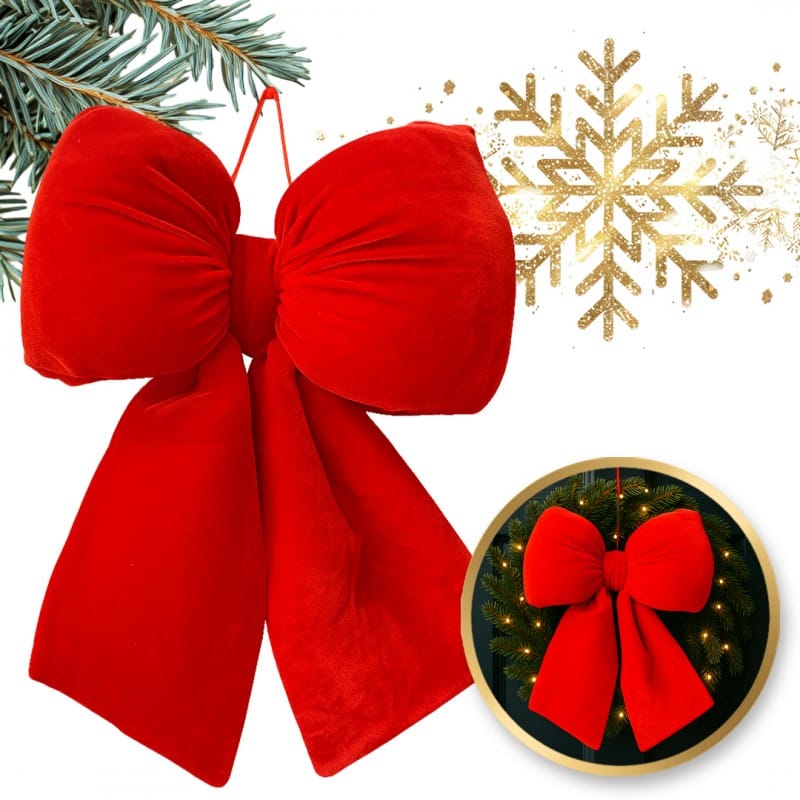 Kokarda, ozdoba świąteczna W przedświątecznym okresie pełnym przygotowań każdemu przyda się chwila wytchnienia.Wprowadź magię Bożego Narodzenia do swojego wnętrza.Ta urocza dekoracja wprowadzi wyjątkowy akcent do każdego pomieszczenia.Jest trwała i zachowuje swój kształt, dzięki czemu będzie cieszyć oko przez cały sezon świąteczny. Wymiary:Długość sznurka: 9cmWymiary kokardy: 29cm x 33cm x 6cm Waga:130g netto / 133g brutto Materiał:100% poliester Poczuj klimat Świąt!
