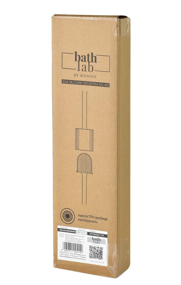 Szczotka do Wc z serii EDA SILICONE marki Bathlab by MONDEX. Silikonowa głowica szczotki z materiału TPR. Miękka i jedyna w swoim rodzaju konstrukcja głowicy szczotki dokładnie wyczyścić trudno dostępne miejsca. Prosta kompaktowa budowa pozwala zaoszczędzić miejsce. Szerokie spektrum zastosowania. Może być stosowana nie tylko w toaletach. Szczotkado WC nadaje się do wszystkich umywalek i wanien z ceramicznymi powierzchniami szklanymi z tworzywa sztucznego. Szczotka jest niezbędnym elementem wyposażenia każdej łazienki, ponieważ pozwala utrzymać czystość i higienę w toalecie. To doskonałe rozwiązanie dla osób ceniących sobie estetykę i funkcjonalność. Innowacyjny design szczotki do WC Bathlab od MONDEX łączy w sobie minimalizm z nowoczesnością, pasując do każdego wnętrza. W zestawie znajduje się praktyczny pojemnik, który nie tylko ułatwia przechowywanie, ale również stanowi dodatkowe zabezpieczenie przed rozpryskiwaniem wody podczas czyszczenia. Wygodna w użyciu, łatwa do czyszczenia i niezwykle trwała . szczotka EDA SILICONE to element, który zmienia codzienne zadania w prostsze czynności. wymiary: 10x4xh36cm waga:196g/258g z opakowaniem zapakowana jednostkowo w eco box: 10x4x36cm
