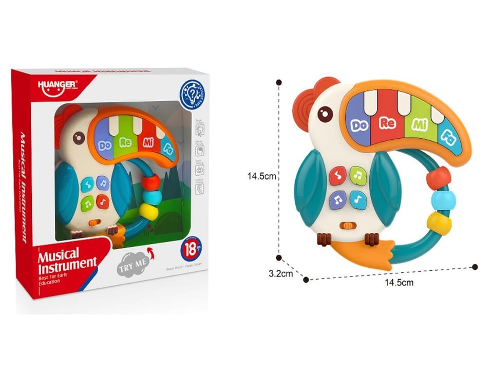 Edukacyjna Zabawka Muzyczna Tukan Pianinko Grzechotka Melodie Dźwięki