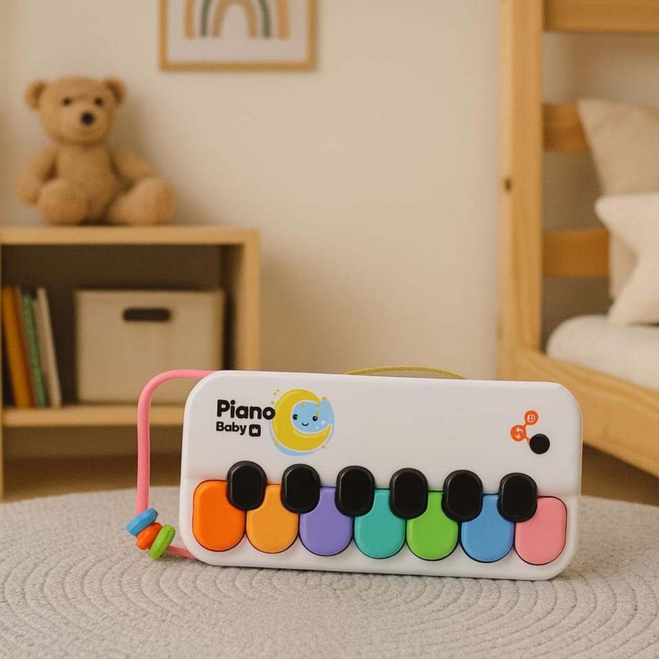 Pianinko Baby Piano to kolorowa, interaktywna zabawka muzyczna stworzona z myślą o najmłodszych. Produkt został zaprojektowany tak, aby wprowadzać dziecko w świat melodii, rytmu oraz barw poprzez prostą i atrakcyjną formę zabawy. Kolorowe przyciski zachęcają malucha do naciskania, a wydobywające się dźwięki wspierają rozwój zmysłów, koordynacji oraz ciekawości świata. Lekka konstrukcja pozwala dziecku swobodnie przenosić pianinko, a wygodny uchwyt ułatwia trzymanie w małych rączkach. Zabawka wykonana została z trwałych, bezpiecznych materiałów, spełniających odpowiednie normy, co czyni ją idealnym wyborem dla dzieci od pierwszych lat życia. Pianinko rozwija kreatywność i pobudza wyobraźnię, oferując jednocześnie świetną rozrywkę.