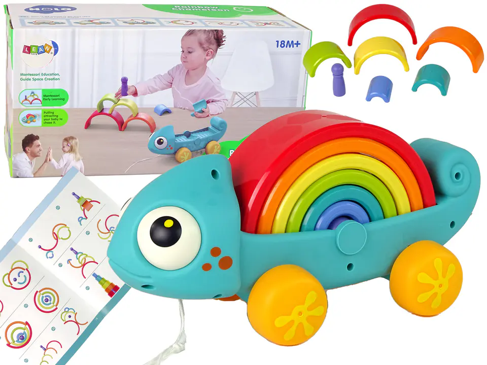 Wyjątkowa układanka stworzona specjalnie dla dzieci powyżej 18 miesiąca życia! Nasza unikalna zabawka w kształcie kameleona na kółkach to idealny towarzysz do rozwijania zdolności manualnych i kreatywności Twojego dziecka.