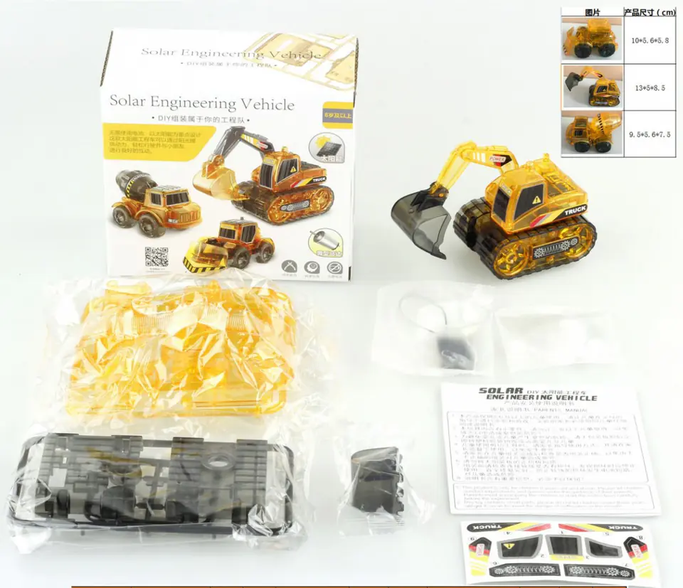 Edukacyjny zestaw solarnych pojazdów budowlanych 3w1 dla dzieci Koparka Betoniarka Spychacz