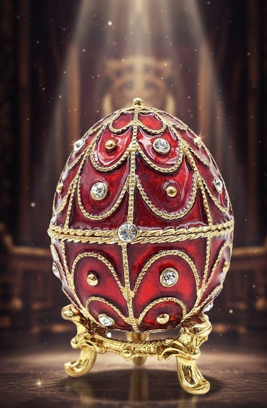 Ekskluzywna metalowa szkatułka z kryształkami - Jajo Fabergé - B0748-17 RD