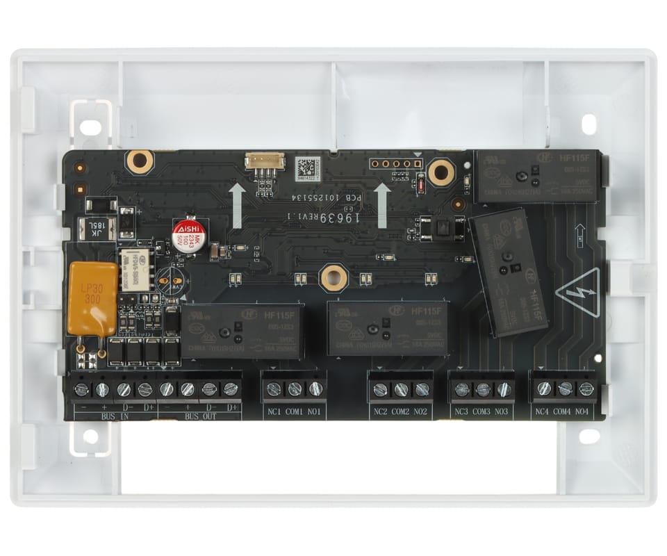 Ekspander przekaźnikowy DS-PM501R4 dodaje do systemu alarmowego 4 wyjścia przekaźnikowe, umożliwiając elastyczne sterowanie urządzeniami zewnętrznymi. Wbudowany extender magistrali na RS-485 upraszcza okablowanie i pozwala zwiększyć zasięg szyny bez dodatkowych modułów. Obudowa z tamperem ułatwia bezpieczny montaż na ścianie.