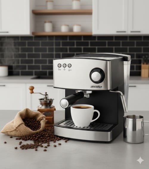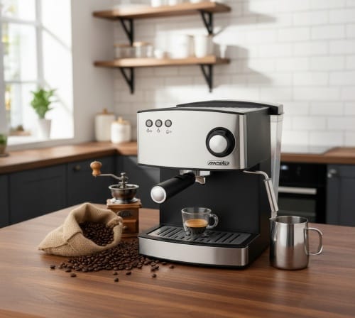 Ekspres ciśnieniowy MESKO został przygotowany specjalnie dla wymagających kawoszy. Jest dobrym rozwiązaniem do domu a i w biurze świetnie się sprawdzi. Wysoka wydajność ekspresu dzięki mocy 850 W i ciśnieniu 15 bar.