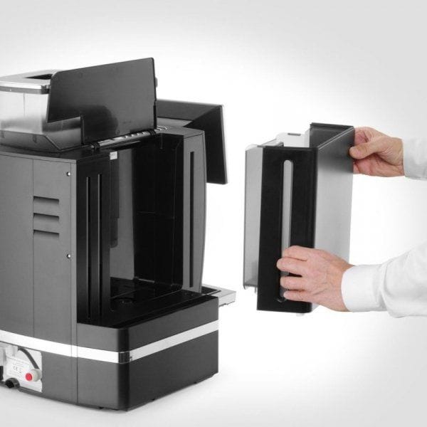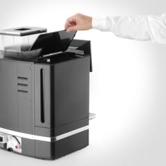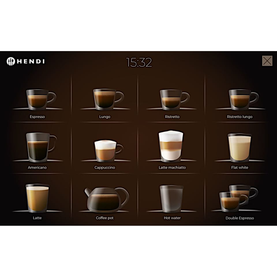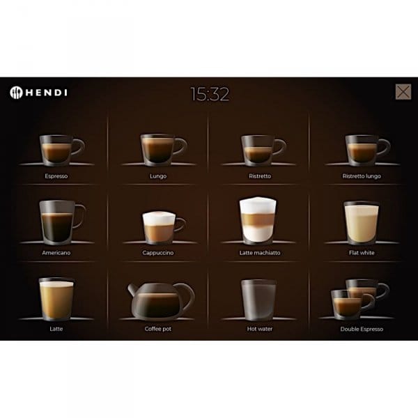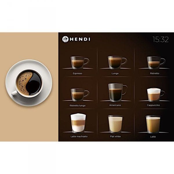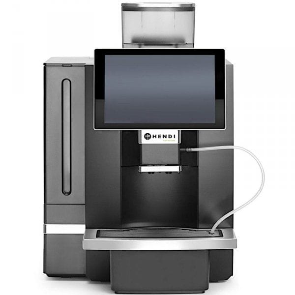 Kod produktu: 1030956Automatyczny ekspres do kawy HENDI to nowoczesny, w pełni zautomatyzowany ekspres, idealny do średnich kawiarni, hoteli, moteli, hosteli, stacji paliw, biur, stołów i środowisk gastronomicznych poszukujących doskonałej, szybko parzonej kawy. Przyjazny dla użytkownika, łatwy do odczytania panel wyboru oraz parzenie jednym przyciskiem sprawiają, że ten ekspres jest idealny do samoobsługi. Ekspres wyposażony jest w duży, 10-calowy kolorowy ekran dotykowy w oraz cyfrowe sterowanie zapewniające intuicyjną obsługę. W ekspresie jest możliwość zaprogramowania aż 17 różnych napojów w tym espresso, lungo, ristretto, americano, cappuccino, latte macchiato, white coffee, dzbanek kawy, gorąca woda oraz różnorodne opcje podwójnej porcji i napojów na bazie mleka. Każdy napój można indywidualnie dostosować do konkretnych preferencji. Ekspres posiada funkcję automatycznego płukania zarówno dla jednostki zaparzającej, jak i systemu mlecznego. Te funkcje pobierają wodę z zbiornika, więc konieczne jest regularne uzupełnianie wody, chyba że urządzenie jest podłączone do bezpośredniego źródła wody, co zapewnia nieprzerwaną pracę. 19-barowa pompa wibracyjna zapewnia optymalne ciśnienie parzenia. Pojemnik na fusy mieści do 35 porcji (w zależności od rodzaju kawy), a taca ociekowa o pojemności 2 litrów skutecznie zbiera zgromadzoną wodę. W zestawie znajduje się również adapter filtra do wody, który można zamontować w zbiorniku na wodę. Możliwość parzenia dwóch filiżanek jednocześnie zwiększa wydajność, a regulowany dozownik kawy pomieści filiżanki o wysokości do 165 mm.Regulowane funkcje: