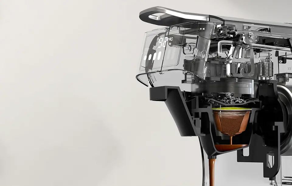 Solidny metalowy uchwyt z lśniącą powierzchnią nie tylko dodaje elegancji, ale również zapewnia trwałość i wygodę użytkowania ekspresu H1B. Duża przestrzeń na kubek umożliwia wykorzystanie ulubionego naczynia, a automatyczne zwalnianie ciśnienia po przygotowaniu napoju zapewnia bezpieczeństwo i łatwość w obsłudze. Ekspres oferuje również funkcję usuwania pozostałej wody po ekstrakcji, zapobiegając kapaniu, co dodatkowo zwiększa komfort użytkowania.
