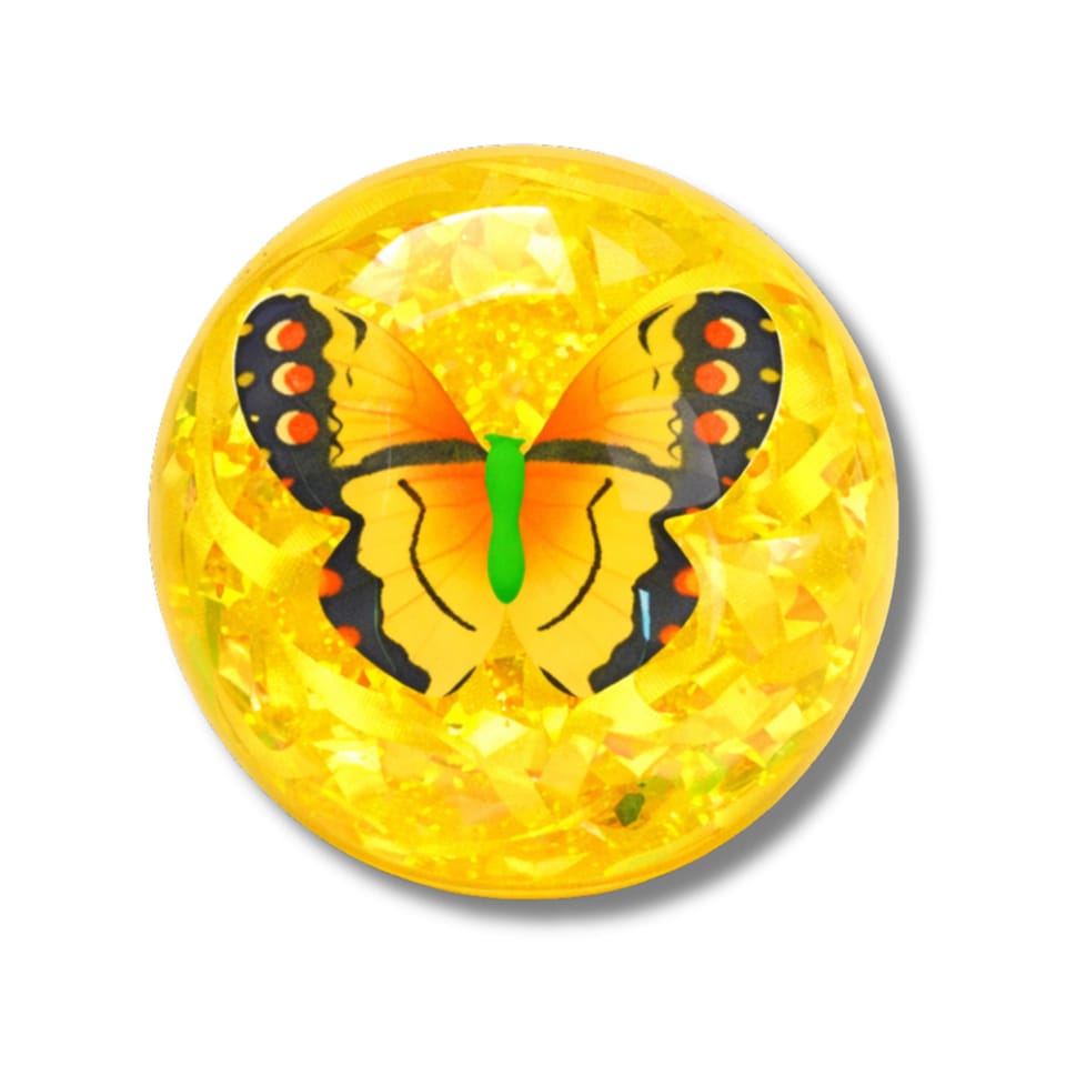 - 1 x elastyczna piłka z konfetti i motylem