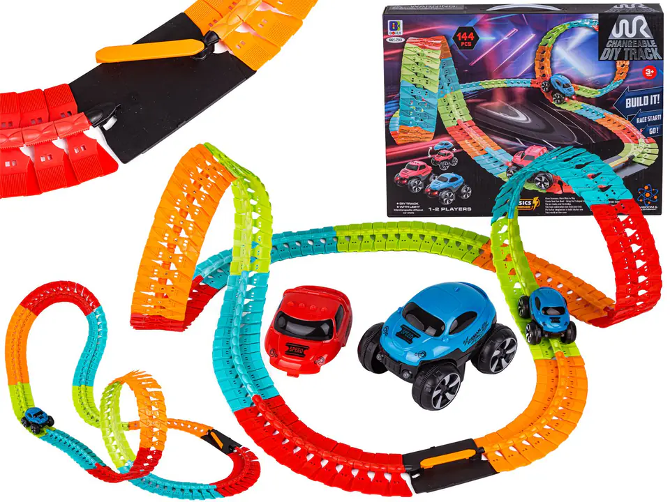 Ten zestaw to nie byle jaki zabawkowy tor wyścigowy. Jest kolorowy i niezwykle elastyczny.Ten super zjazd pozwala na ułożenie niezwykłych kombinacji toru przez co jazda po nim tym wyścigowym świecącym autkiem jest absolutnie odjazdowa! To prawie jak off-road, pełen ekstremalnych zakrętów, podjazdów, pętli i zjazdów. A co najważniejsze - ułożenie toru zależy tylko i wyłącznie od ciebie.