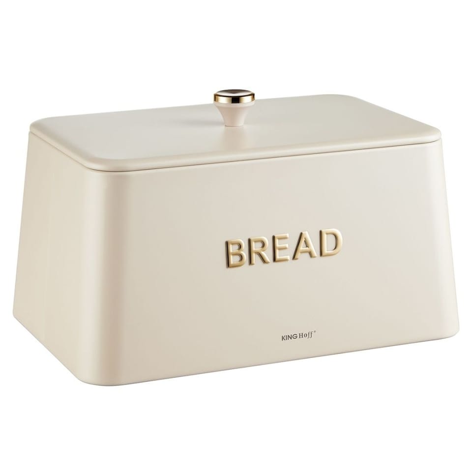 Nowoczesny i stylowy chlebak marki KINGHoff w eleganckim, kremowym kolorze to połączenie funkcjonalności i ponadczasowego designu. Wykonany z wysokiej jakości metalu malowanego proszkowo, wyposażony w solidną pokrywę z ozdobnym uchwytem, idealnie chroni pieczywo przed wysychaniem i utratą świeżości.