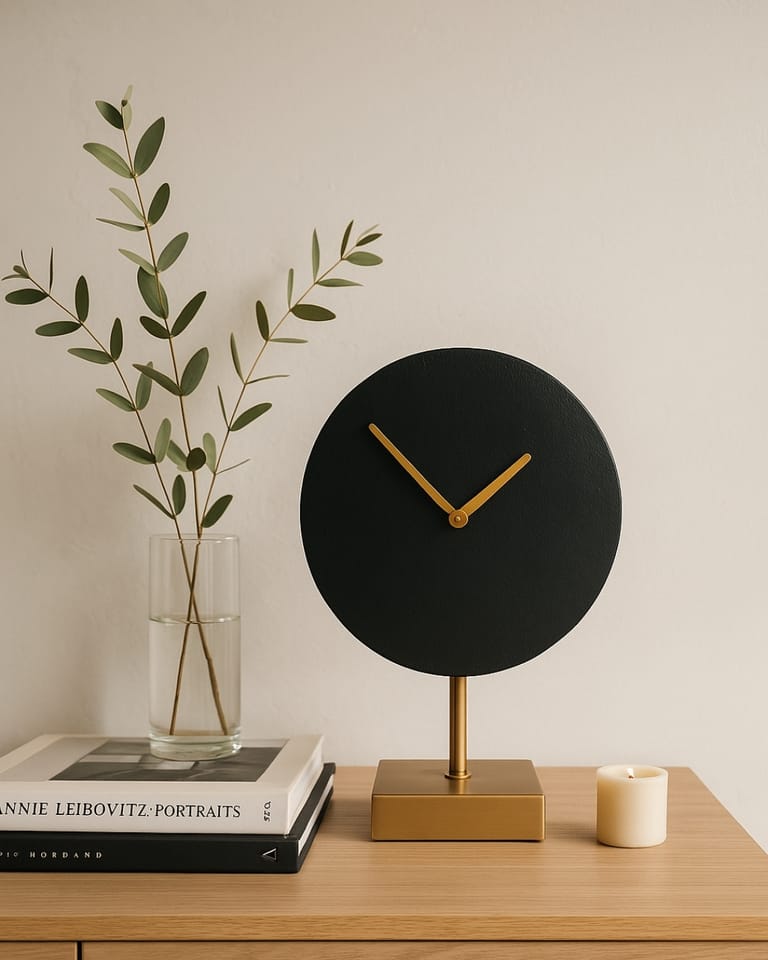 Elegancki Zegar Metalowy – Złoto & Czerń w Wyjątkowym Stylu Szukasz dekoracji, która odmieni Twoje wnętrze? Zegar dekoracyjny 4122 to połączenie elegancji, nowoczesnego stylu i funkcjonalności. Jego złota metalowa podstawa oraz czarna tarcza ze złotymi wskazówkami sprawiają, że to nie tylko praktyczny zegar, ale również efektowny element wystroju. Pasuje idealnie do: wnętrz w stylu glamour, loft, nowoczesnym, industrialnym, salonu, sypialni, gabinetu, przedpokoju czy biura, osób ceniących luksusowe detale i ponadczasowy styl. ?? Specyfikacja Produktu: Wymiary: 26,5 cm (szer.) x 7 cm (gł.) x 36,5 cm (wys.) Materiał: solidny metal Kolorystyka: złota podstawa, czarna tarcza, złote wskazówki Styl: glamour / nowoczesny / industrialny Zasilanie: bateryjne (bateria nie dołączona) Dlaczego warto? Stylowy akcent do nowoczesnych wnętrz Idealny jako prezent do nowego mieszkania Wysoka jakość wykonania – trwała metalowa konstrukcja Pasuje do wielu aranżacji – zarówno klasycznych, jak i designerskich