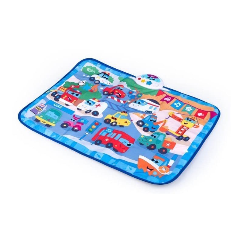 Elektroniczna Mata Pojazdy Poznaj pojazdy drogowe, słuchając ich realistycznych odgłosów! Na macie ukryło ich się ich całe mnóstwo, począwszy od pojazdów miejskich, przez pojazdy użyteczności publicznej, aż po maszyny budowlane. Mata posiada 3 tryby zabawy: realistyczne odgłosy pojazdów, melodie i dźwięki. Kryją się tu też wesołe światełka, a nawet opcja łączenia muzyki z odgłosami. Zabawka wyposażona zostaław funkcję regulacji głośności, co umożliwia dostosowanie jej do indywidualnych potrzeb malucha. Cechy produktu: - 15 odgłosów drogowych; - 15 zmiksowanych utworów; - 7 wesołych melodii; - kolorowe światełka; - 3 tryby zabawy: pojazdy (realistyczne odgłosy drogowe), melodie i dźwięki; - wyłącznik dźwięku; - regulacja głośności; - rozmiar maty: 70 x 50 cm; Baterie: 1 x AAA (zawarte w zestawie) Wiek: 8m+