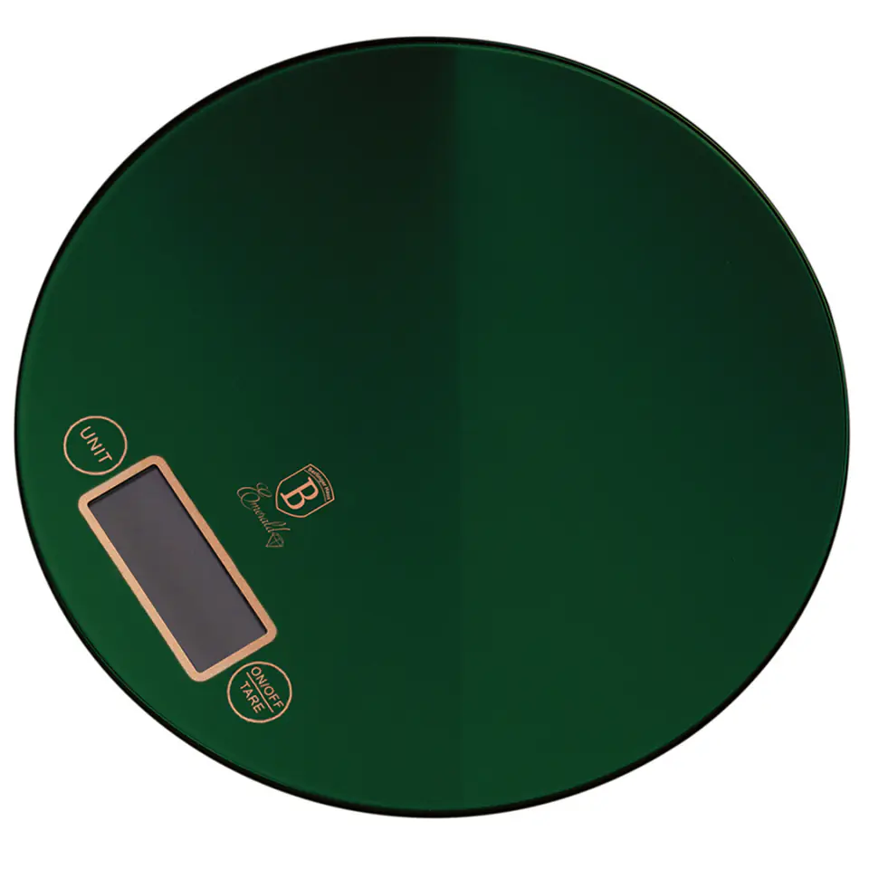 Super płaska waga kuchenna BERLINGER HAUS. Praktyczna i estetyczna w kolorystyce linii Emerald, wykonana ze szkła hartowanego. Czułość wagi to 1g, a maksymalny ważony ciężar to 5kg. Wskazania wyświetlane są na dużym ciekłokrystalicznym wyświetlaczu LCD. Posiada bardzo wygodną funkcję automatycznego zerowania oraz funkcję TARY. Oznacza to, że składniki można wkładać do miski i odważać po trochu bez wyjmowania poprzednich, które się tam znajdują. Model ten cechuje estetyczne wykonanie z wysokiej jakości materiałów. Wagę można używać z dowolnym naczyniem lub bez. Kolorystyka dopasowana jest do linii naczyń Emerald Collection