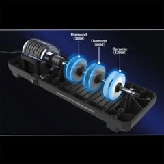 Sekretem tej ostrzałki są trzy specjalistyczne tarcze o różnych gradacjach (ziarnistościach), które zapewniają idealny proces ostrzenia:
