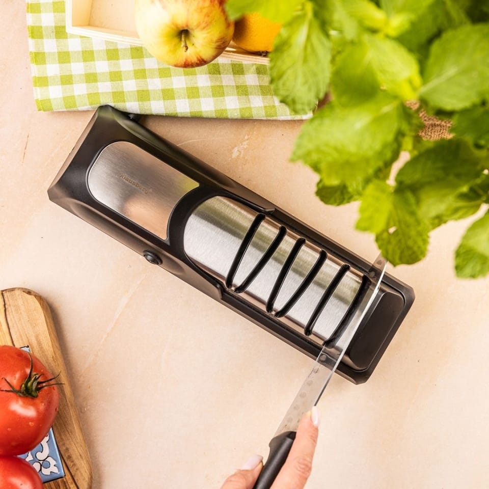 Elektryczna diamentowa ostrzałka Klausberg to sprzęt, który odmieni codzienne przygotowanie potraw – idealna dla profesjonalnych szefów kuchni, pasjonatów gotowania i miłośników grillowania. Łączy w sobie trwałość, estetykę i precyzję ostrzenia klasy premium.