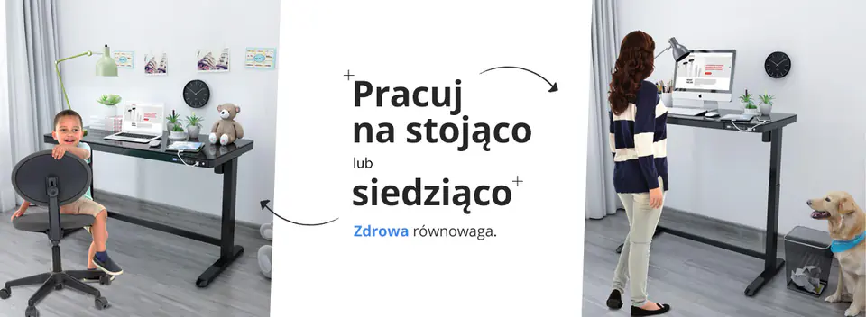 Stelaż z elektryczną regulacją wysokości został wyposażony w ulepszoną technologię antykolizyjną. Ten innowacyjny system powoduje, że biurko podczas zmiany wysokości cofnie się automatycznie, jeśli napotka przeszkodę na swojej drodze. Jest to świetna funkcja dla tych, którzy mają dzieci lub zwierzęta domowe, które przychodzą do twojego miejsca pracy.