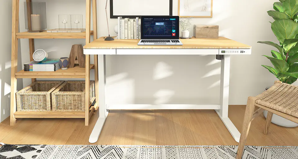 SPE-B128WT Astrid z serii Spacetronik ERGOLINE to biurko elektryczne z regulacją wysokości wyposażone w solidny blat z bambusa oraz pojemną szufladę do przechowywania. Posiada wbudowany silnik zapewniający sprawną i płynną zmianę wysokości. Łatwy montaż, z którym poradzi sobie każdy użytkownik. Regulacja daje poczucie komfortu i możliwość dopasowania indywidualnych potrzeb pracownika, a także może wpłynąć na efektywność pracy.