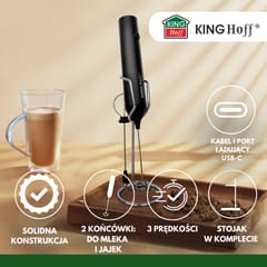 Przygotuj mleczną piankę jak z profesjonalnej kawiarni – szybko, czysto i bez wysiłku. Bezprzewodowy spieniacz KINGHoff KH-2001 to poręczne urządzenie z akumulatorem, ładowaniem USB-C, trzema poziomami prędkości oraz dwiema wymiennymi końcówkami, dzięki którym przygotujesz cappuccino, latte, kakao, frappe, shake białkowy czy masę jajeczną do omletów. Smukły korpus o matowym wykończeniu i metalowy stojak sprawiają, że urządzenie świetnie prezentuje się na kuchennym blacie, a jednocześnie jest zawsze gotowe do użycia.