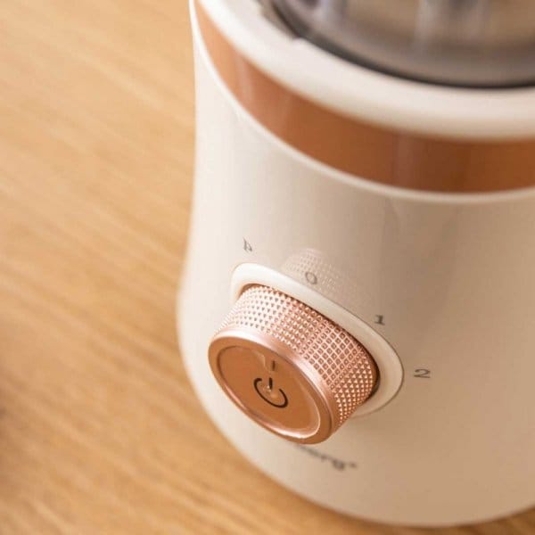 Czy młynek posiada zabezpieczenie? Tak, wyposażony jest w blokadę bezpieczeństwa i nie uruchomi się bez prawidłowo zamkniętej pokrywy.