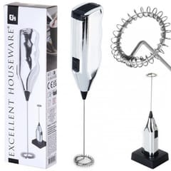 Spieniacz elektryczny do mleka pomoże przygotować cappuccino, latte macchiato. W zestawie plastikowy stojak. Zasilanie 2 x 1,5V bateria AA (brak w zestawie).