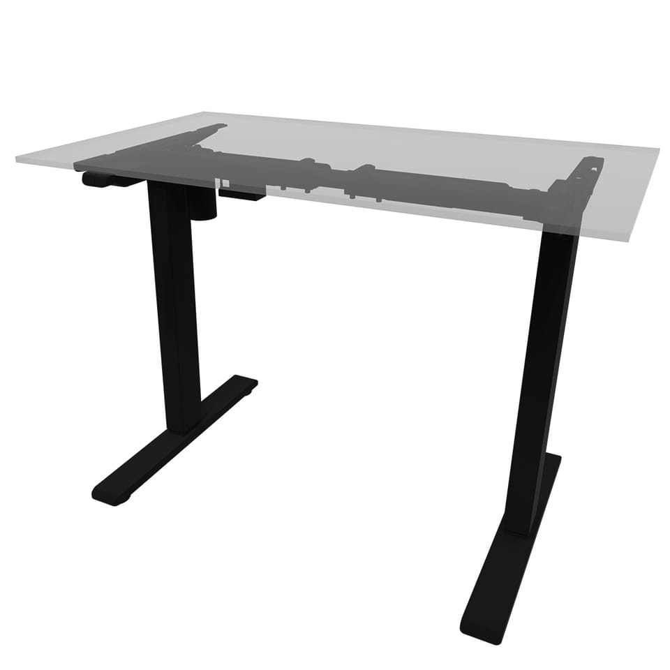 Wszechstronna rama elektrycznego stelaża oprócz regulacji góra/dół pozwala na ręczną regulację horyzontalną (w bok). W łatwy sposób rozszerzysz konstrukcję pod wymiar swojego blatu. Sugerowane wymiary blatu: 1000-1600 mm (szerokość), 500-800 mm (głębokość).