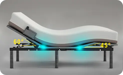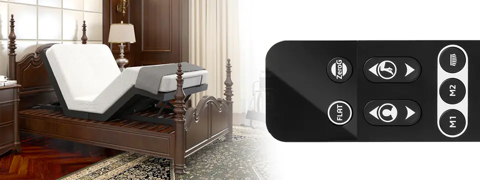Skorzystaj z regulowanego zagłówka w zakresie od 0 do 60 stopni lub podnóżka w celu osiągnięcia najbardziej dogodnej pozycji. Regulacja odbywa się za pomocą bezprzewodowego pilota, posiadającego przyciski do regulacji góra / dół, dwie domyślne pozycje- leżąca i "zero gravity" oraz dwa przyciski do zapisania własnych ustawień. Łatwo znaleźć idealny kąt do czytania, oglądania telewizji lub spania. Regulowany zagłówek łagodzi ból pleców i niweluje problemy związanie ze wstawaniem, przede wszystkim osób starszych. Podnoszony podnóżek zapewnia lepsze krążenie krwi. To także idealne rozwiązanie dla kobiet w ciąży.
