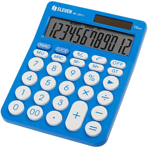 ELEVEN Kalkulator biurowy w kolorze niebieskim, okrągłe białe przyciski, RK2311BL