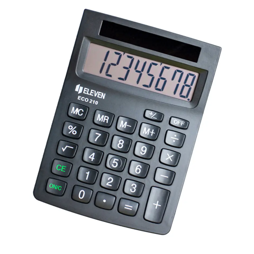 Eleven Kalkulator ECC210, czarna, biurkowy, 8 miejsc, zasilane energią słoneczną