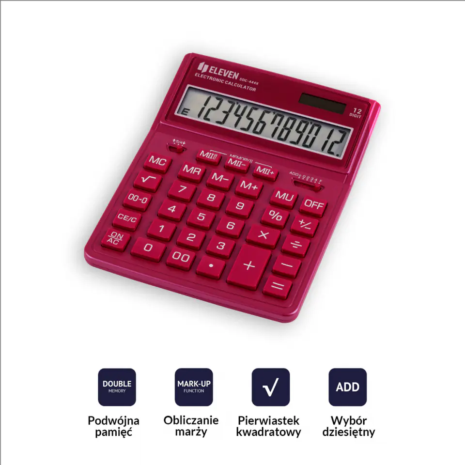 Eleven SDC-444XR to kalkulator biurowy najwyższej jakości. Posiada podwójne zasilanie - słoneczne i bateryjne GP195, dzięki czemu sprawdzi się w każdej sytuacji i będzie niezawodny.