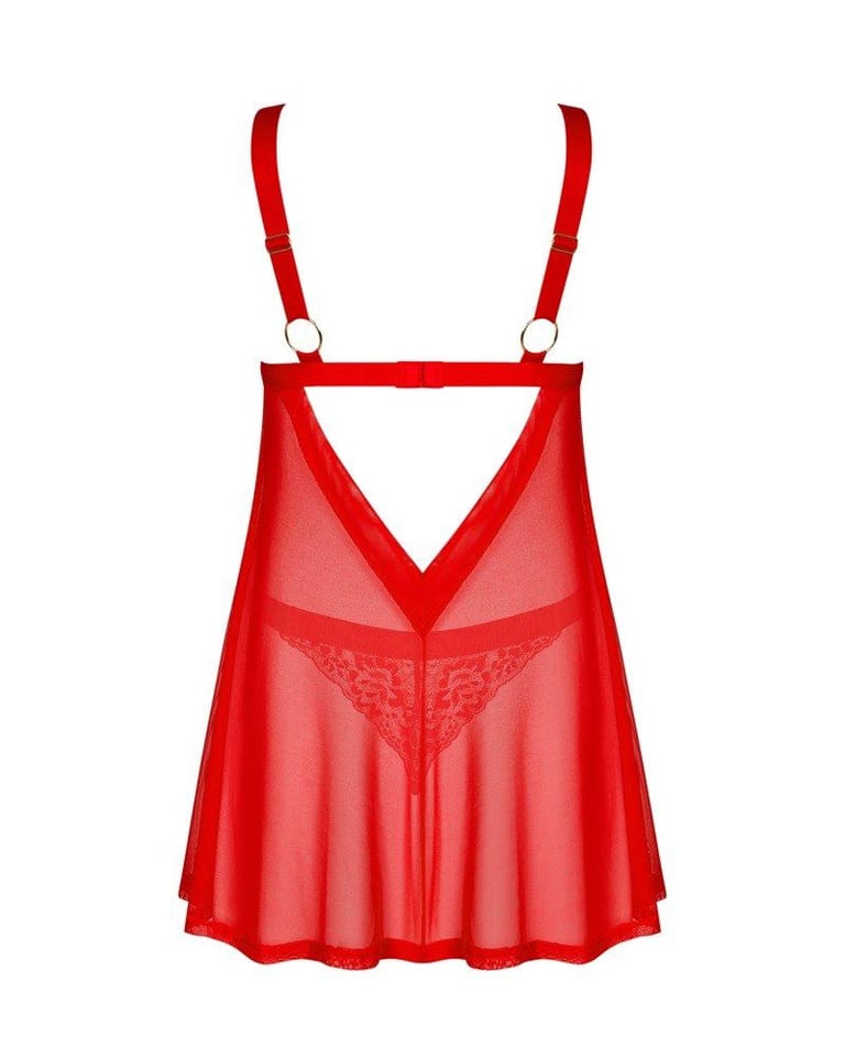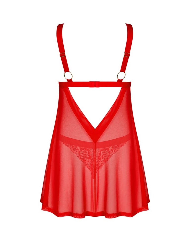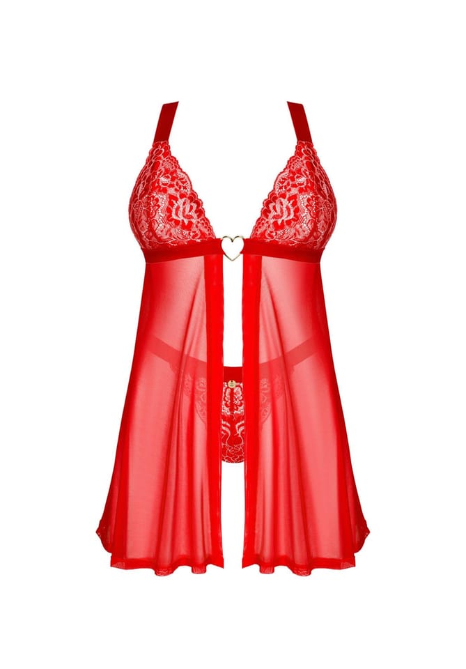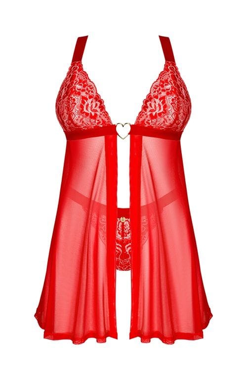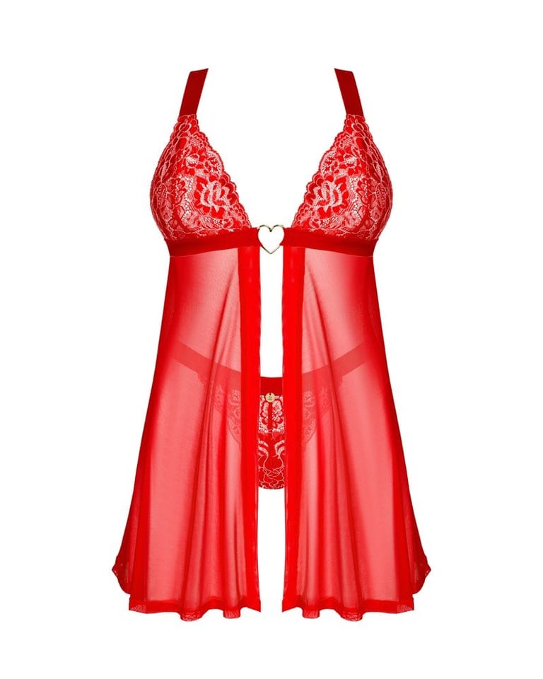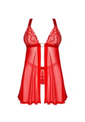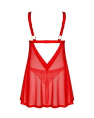 Masz ochotę na niestandardowy zestaw, który delikatnie wyeksponuje Twoją kobiecość? Klasyczne koronkowe stringi i babydoll w ponętnym czerwonym kolorze sprawią, że poczujesz się pięknie. Zwiewna tkanina przyjemnie okryje ciało, a przyciągające wzrok koronkowe wstawki pozwolą Ci znaleźć się w centrum zainteresowania.Poznaj więcej szczegółów:- babydoll oraz stringi w czerwonym kolorze- kilkustopniowe zapięcie i regulowane ramiączka – zapewniają doskonałe dopasowanie- kuszący krój – niebanalny projekt- łącznik w kształcie złotego serca – wzbudza ciekawość- znakomite zestawienie elastycznych materiałów – zadba o komfort i piękny wygląd (babydoll: 94% poliamid, 6% elastan; stringi: 90% poliamid, 10% elastan)