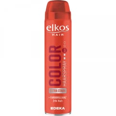Elkos Extra Stark Color wyjątkowo mocne 24-godzinne utrwalenie, z prowitaminą B5. Nadaje jedwabisty połysk i wzmacnia blask koloru włosów farbowanych bez sklejania. Bez silikonów.