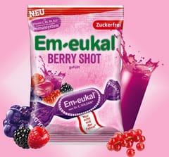 Em-eukal Berry Shot to bezcukrowe, wypełniane cukierki o intensywnie owocowym smaku, stworzone z myślą o osobach ceniących zdrowe i funkcjonalne słodycze. Połączenie koncentratów soków z aronii, porzeczki, jeżyny i malin oraz zestawu 10 witamin sprawia, że produkt wspiera codzienną dietę.