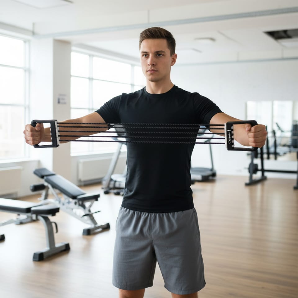 EM01 HMS - to przyrząd do ćwiczeń górnych partii mięśniowych. Składa się z pięciu lin zamocowanych do dwóch uchwytów wykonanych z wytrzymałego tworzywa. aciągi ekspandera powstały z specjalnej gumy. Materiał posiada zwiększoną wytrzymałość na rozciąganie. Siłę oporu reguluje się poprzez założenie odpowiedniej ilości lin. EM01 HMS jest skutecznym sposobem wzmocnienia i wysmuklenia ramion, klatki piersiowej, brzucha, pleców oraz miednicy. Ekspander może być stosowany do ćwiczeń ogólnorozwojowych oraz rehabilitacyjnych. Specyfikacja: Gumowe naciągi Uchwyty ze sztucznego tworzywa Długość naciągów: 54 cm Zakres obciążenia: 1 - 30 kg Długość całkowita przyrządu (z uchwytami): 78 cm Uwagi: Certyfikaty,normy : CE Gwarancja 24 miesiące Importer: Abisal Sp. z o.o.| Polska | 41-807 Zabrze | ul. Pyskowicka 17 | e-mail: abisal@abisal.plAbisal Sp. z o.o. deklaruje, iż produkty sprzedawane przez firmę są bezpieczne i spełniają wymagania zawarte w Ustawie o ogólnym bezpieczeństwie produktów z dnia 12 grudnia 2003r. (Dz.U. z dnia 31 grudnia 2003r.)