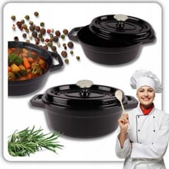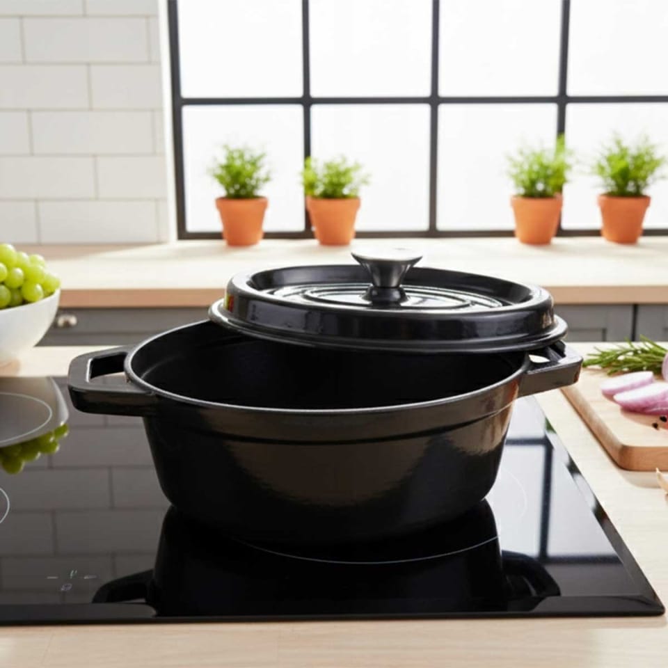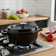 Odkryj niezrównany smak i aromat potraw dzięki naszej emaliowanej brytfannie żeliwnej w przepięknym, czarnym kolorze. To wszechstronne i niezastąpione naczynie w każdej kuchni, które łączy w sobie tradycyjną solidność żeliwa z nowoczesną elegancją. Idealne do pieczenia chleba, duszenia, zapiekania i gotowania mniejszych potraw, pozwoli Ci na nowo odkryć radość z tworzenia kulinarnych arcydzieł.