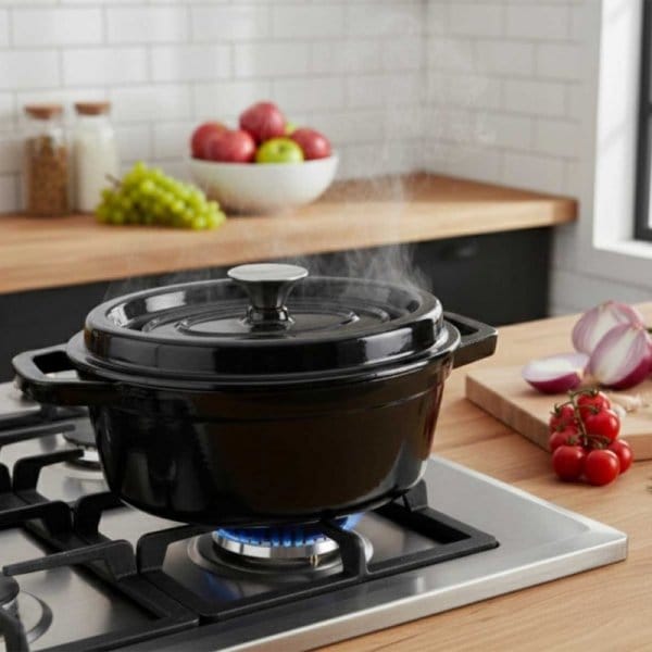 - Perfekcyjna dla domowych piekarzy: Dzięki wyjątkowej zdolności kumulowania ciepła, brytfanna stwarza idealne warunki do wypieku chleba, gwarantując chrupiącą skórkę i miękki środek.