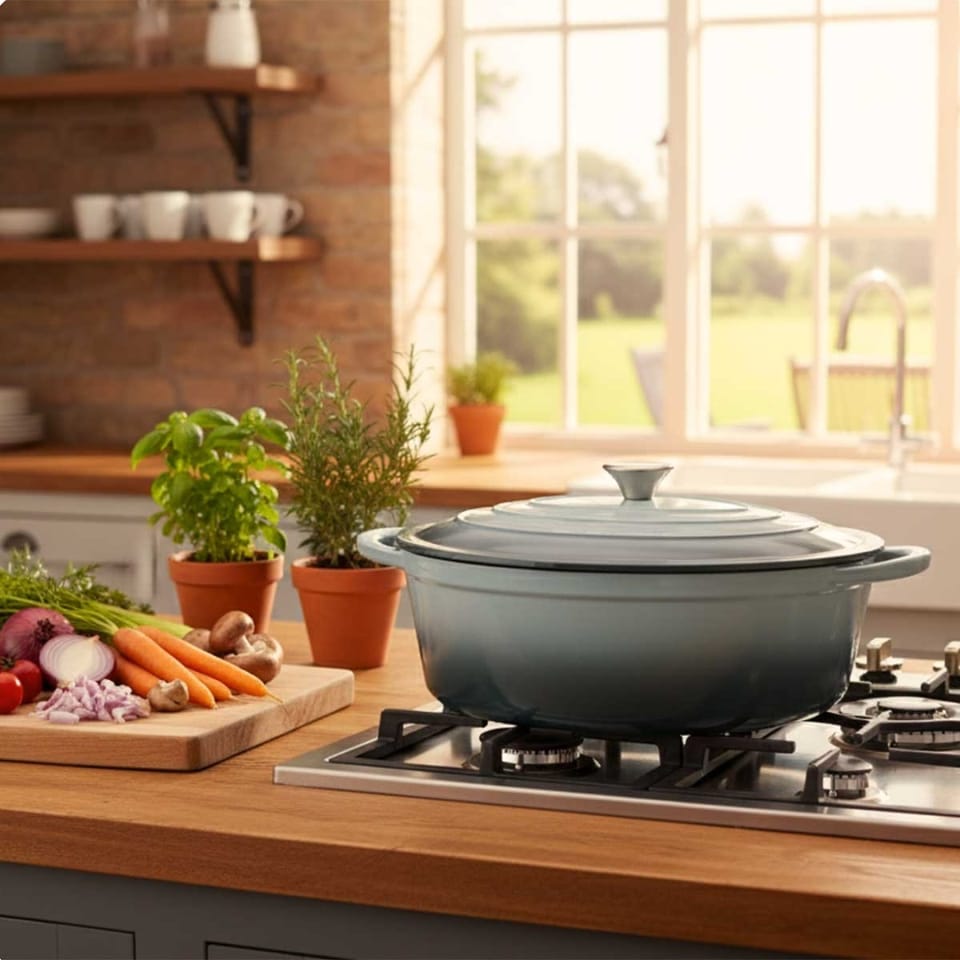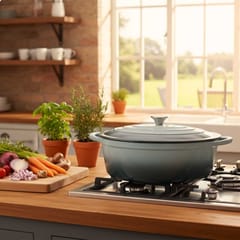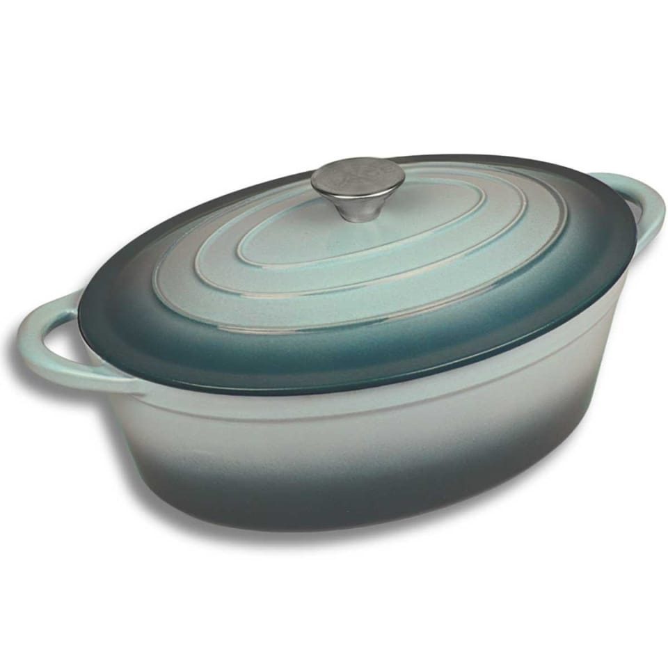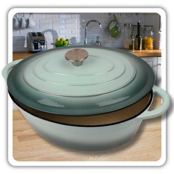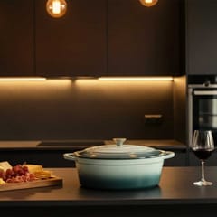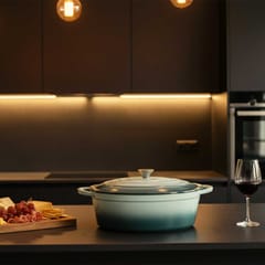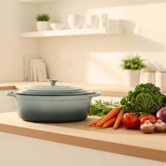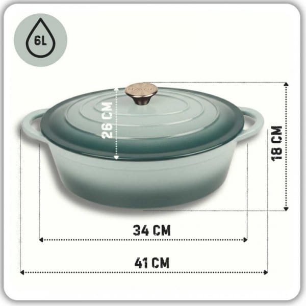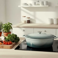 Odkryj niezrównany smak i aromat potraw dzięki naszej emaliowanej brytfannie żeliwnej w przepięknym kolorze Sea Salt. To wszechstronne i niezastąpione naczynie w każdej kuchni, które łączy w sobie tradycyjną solidność żeliwa z nowoczesną elegancją.Idealne do pieczenia, duszenia, zapiekania i gotowania, pozwoli Ci na nowo odkryć radość z tworzenia kulinarnych arcydzieł.