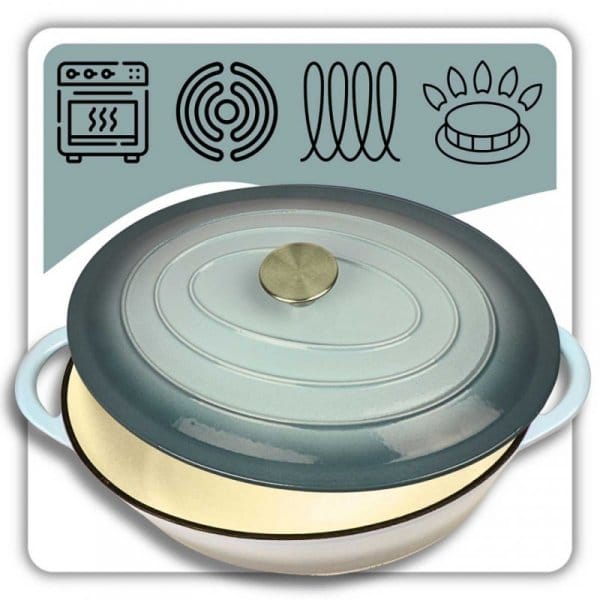 - Materiał żeliwo emaliowane (na zewnątrz i wewnątrz)