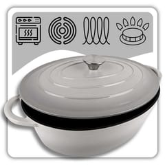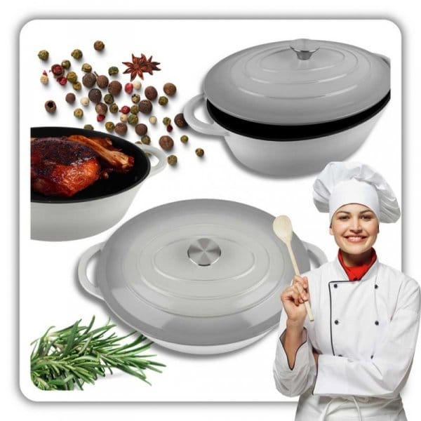 Odkryj niezrównany smak i aromat potraw dzięki naszej emaliowanej brytfannie żeliwnej w przepięknym szarym kolorze. To wszechstronne i niezastąpione naczynie w każdej kuchni, które łączy w sobie tradycyjną solidność żeliwa z nowoczesną elegancją.Idealne do pieczenia, duszenia, zapiekania i gotowania, pozwoli Ci na nowo odkryć radość z tworzenia kulinarnych arcydzieł. Wnętrze naczynia wymaga okresowej impregnacji olejem. Naczyń żeliwnych nie należy myć w zmywarkach. Zaleca się mycie ręczne i wytarcie do sucha aby uniknąć pojawienia się rdzawych nalotów.
