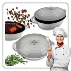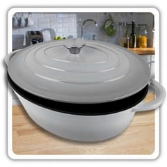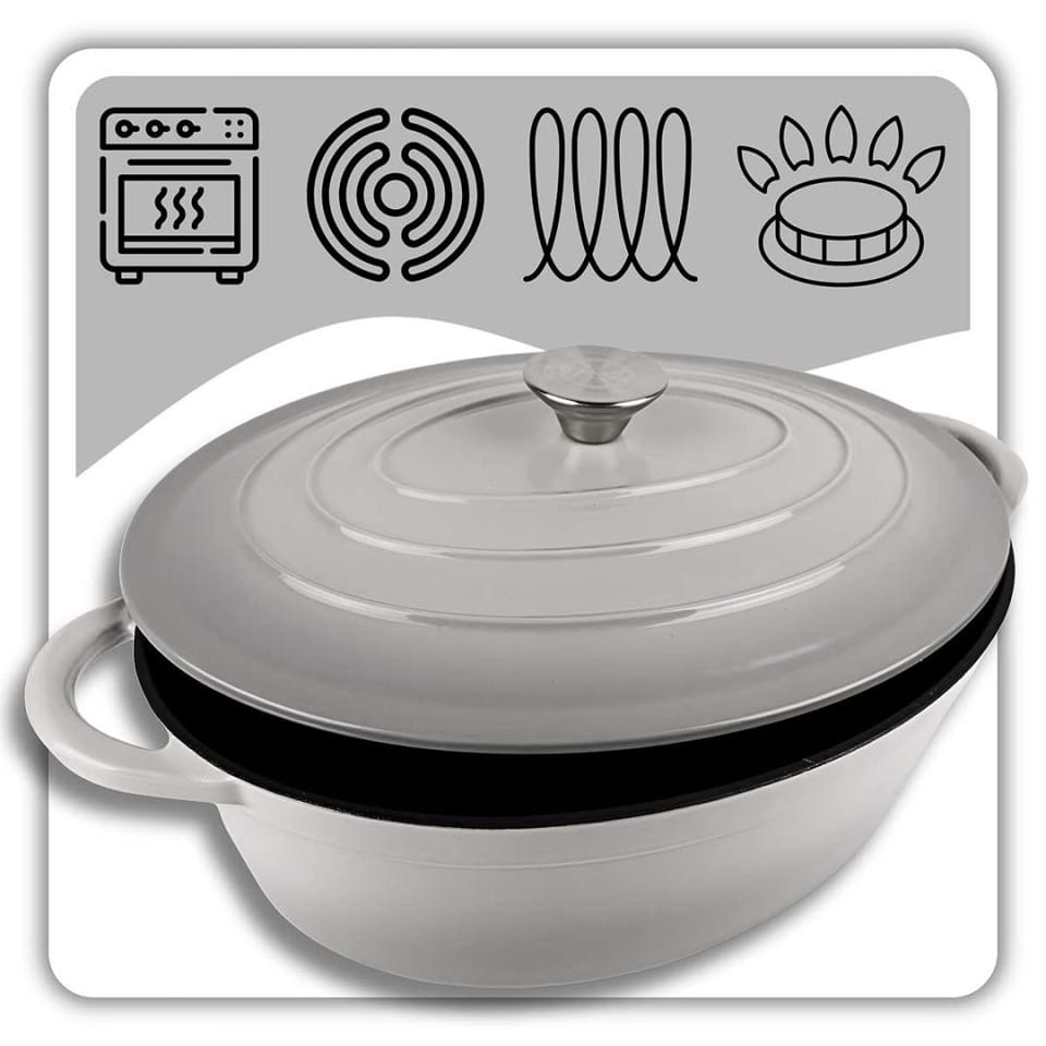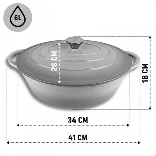 - Elegancki Wygląd i Funkcjonalność: Piękna emalia w kolorze szarym nie tylko nadaje naczyniu wyjątkowego charakteru, ale również chroni żeliwo i ułatwia jego czyszczenie. Brytfanna będzie ozdobą zarówno w kuchni, jak i na stole.